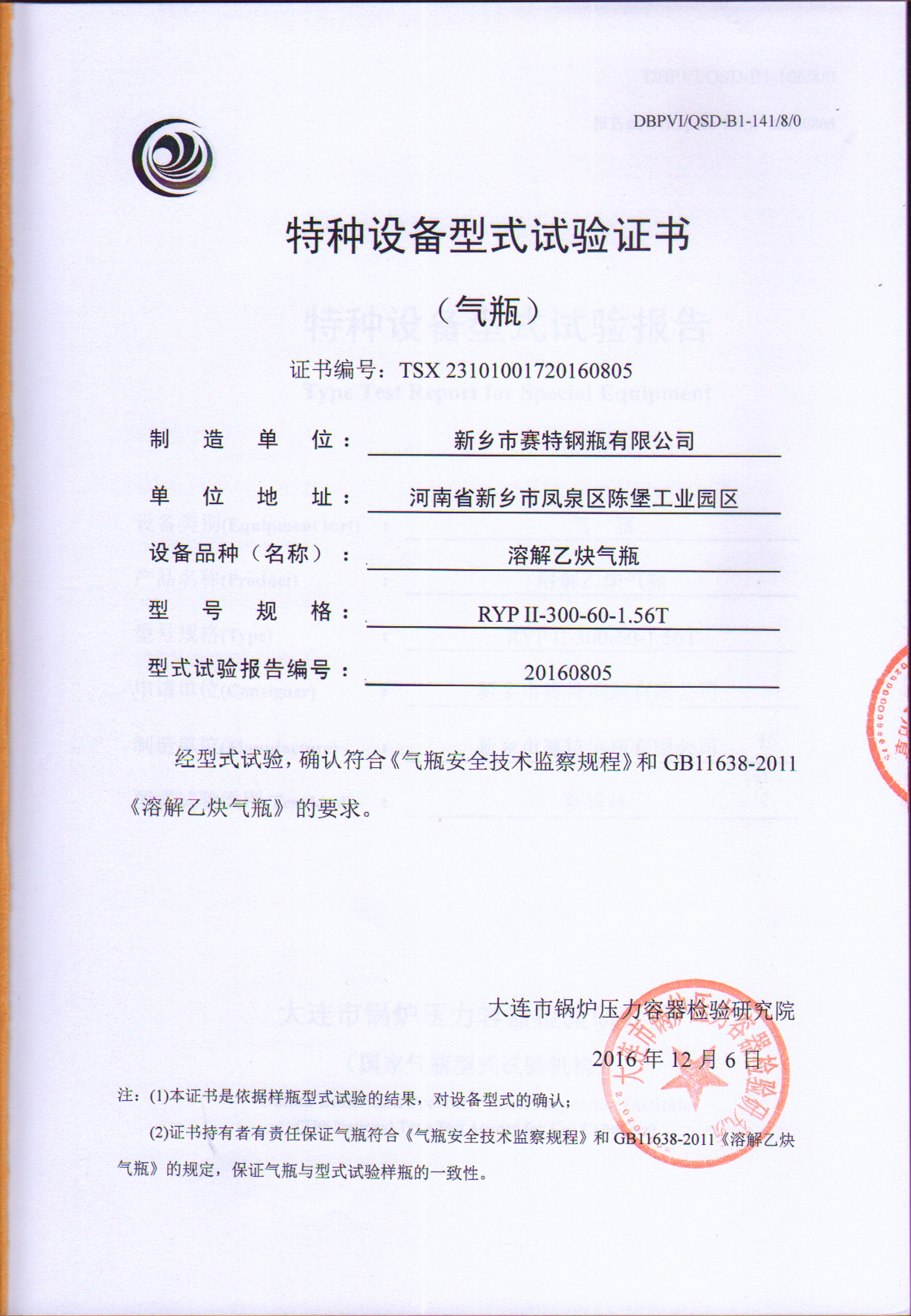RYPII300-60-1.56T溶解乙炔氣瓶